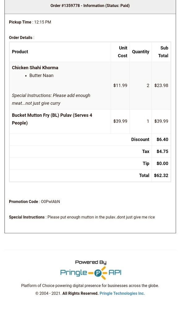 Andhra Chicken Pulav Bucket