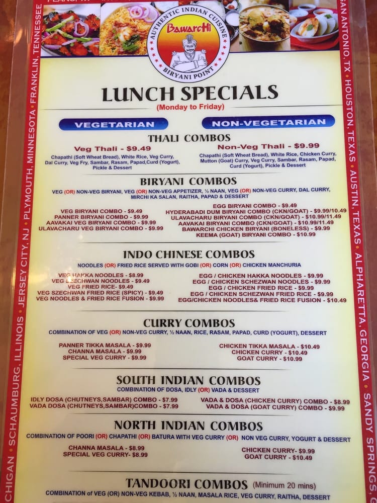 Bawarchi Biryanis - Plano Menu